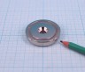 КА-42 Неодимовый магнит диаметр 42мм,высота 9мм в стальном стакане. С отверстием 6,5мм и зенковкой 12мм. Вес 76гр. Макс. температура эксплуатации: 80 °C (поставка без шурупа) Сцепление: прибл. 38 кг